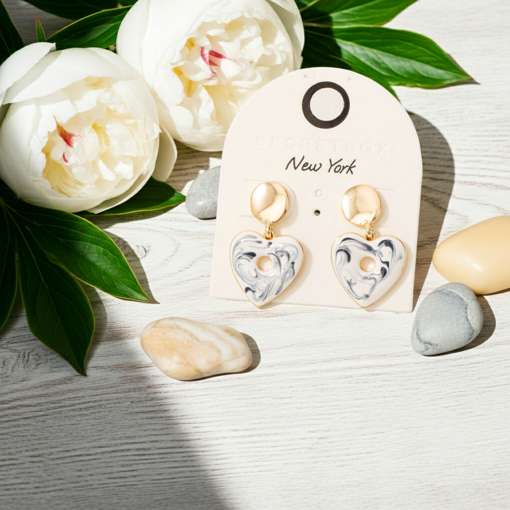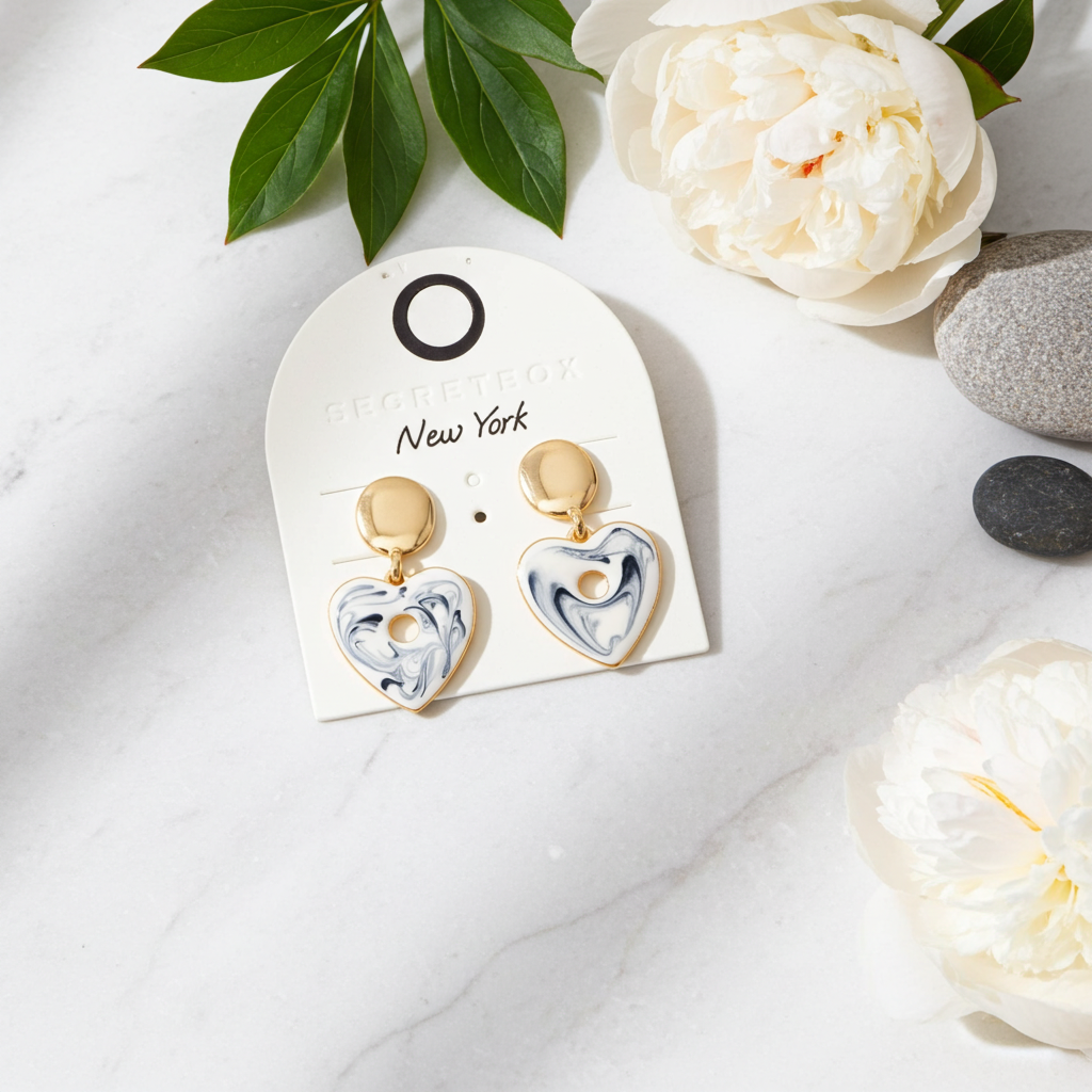 This pair of dangle earrings brings a unique blue ceramic heart style. Celebrate individuality with this pair of dangle earrings that effortlessly expresses your unique sense of style.