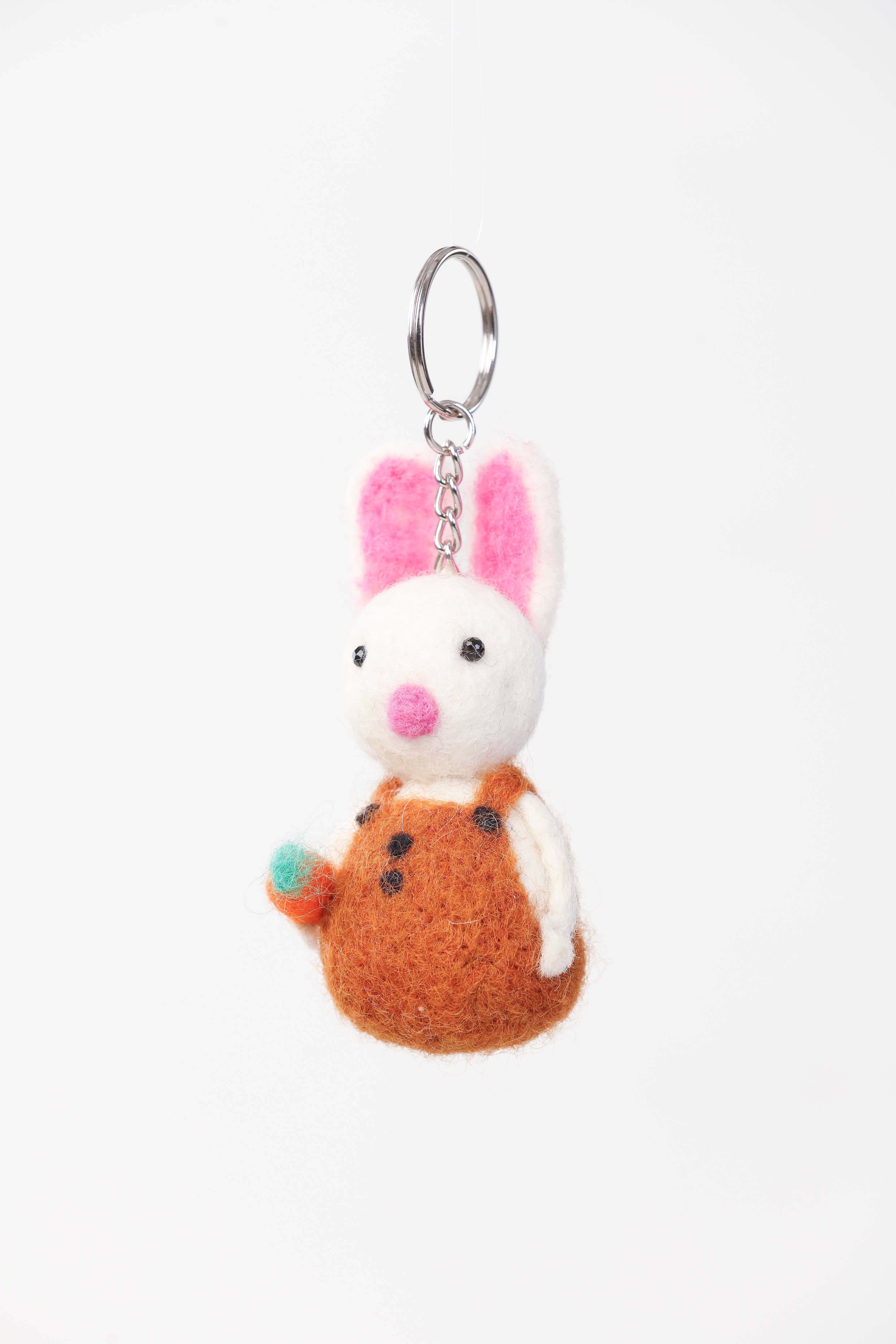 • Felt bunny keychain, handmade in Nepal by resilient women survivors