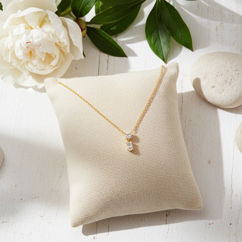 Gold Dipped Cz Circle And Oval Pendant Necklace