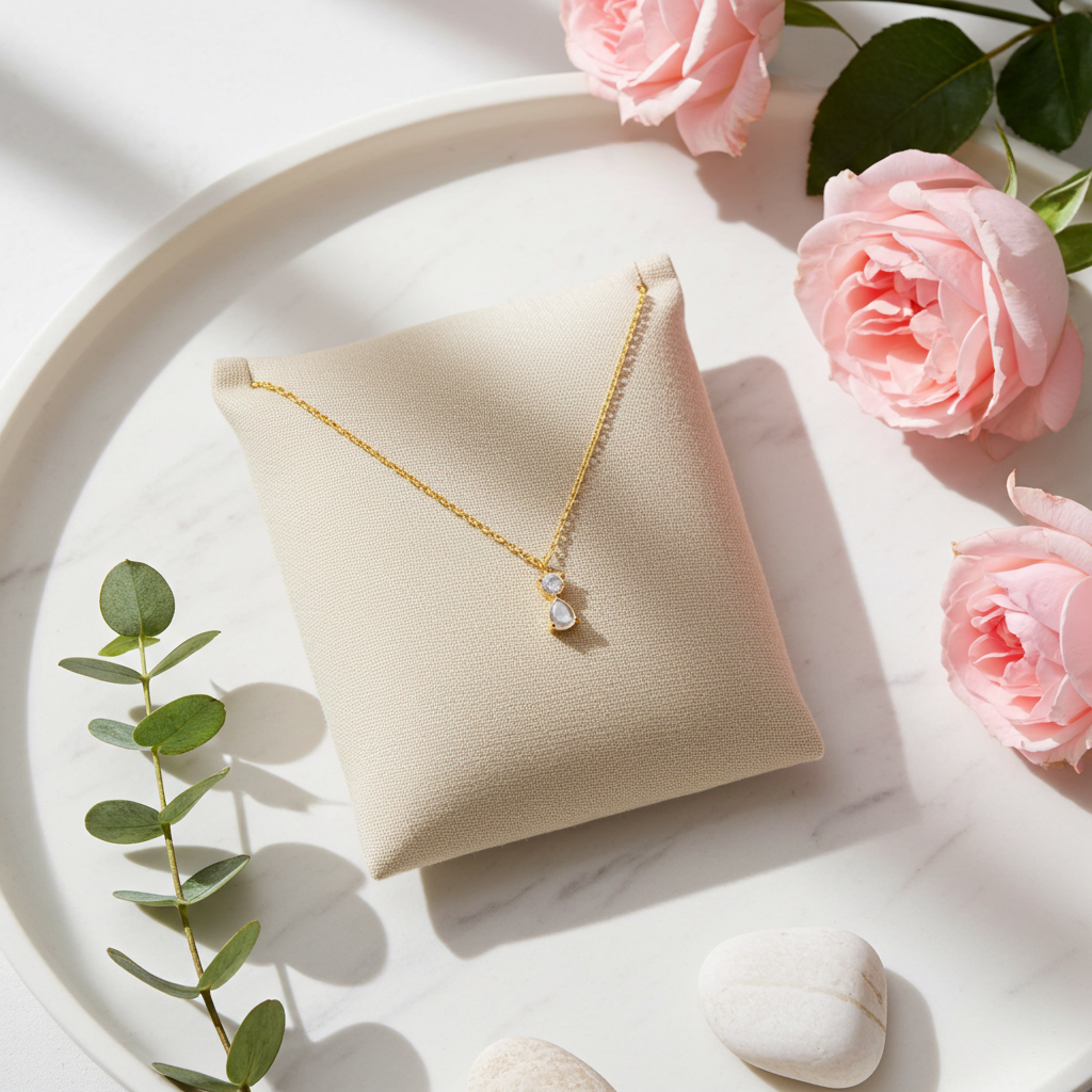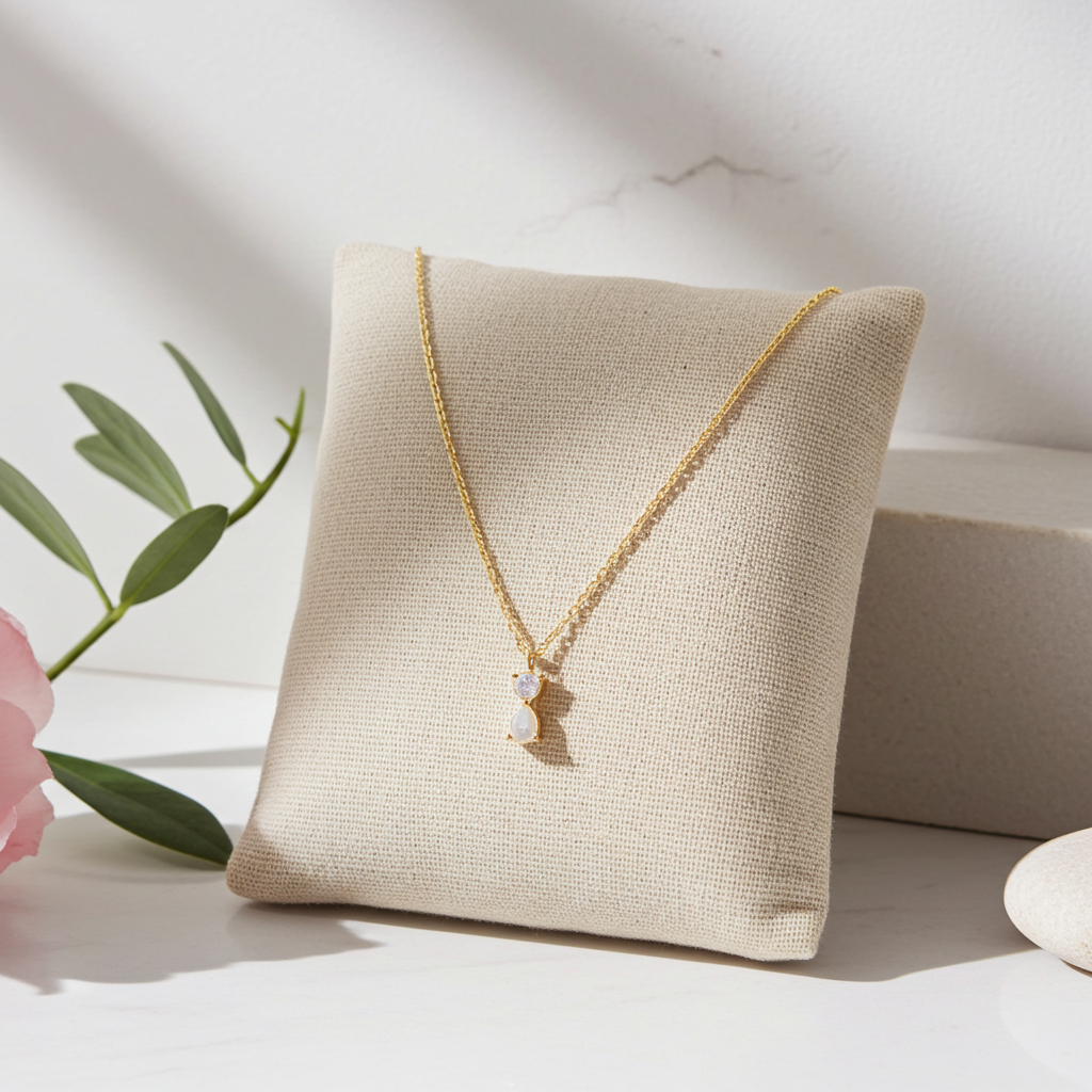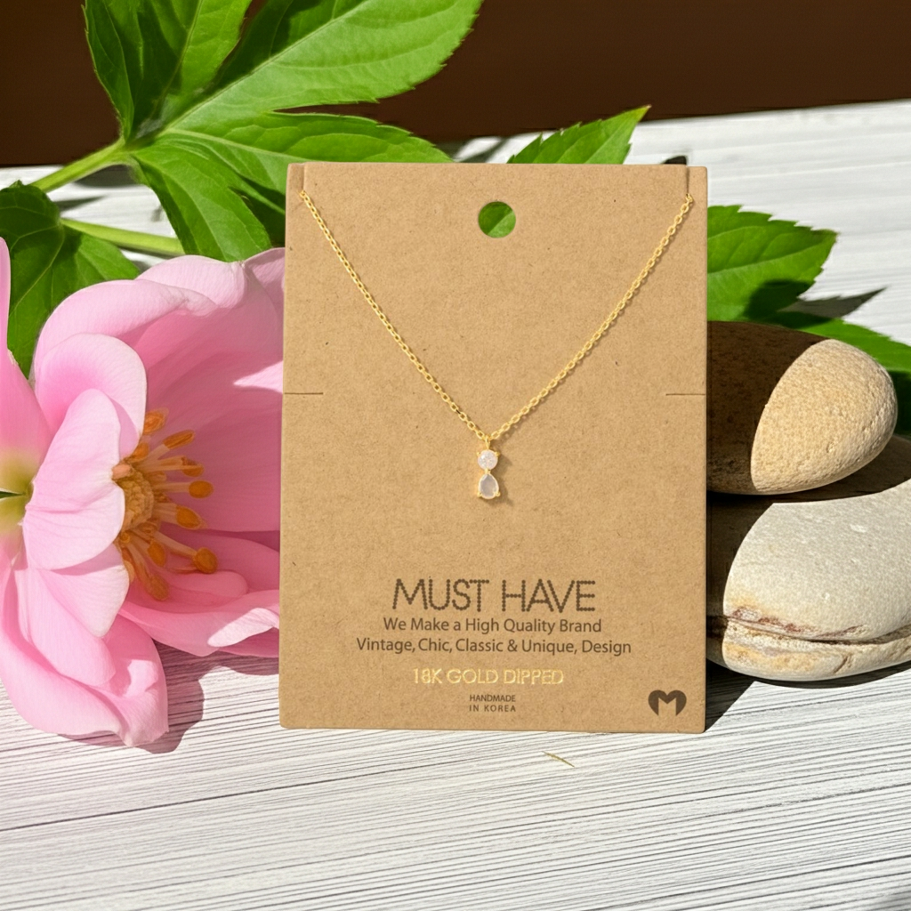 This trending necklace displays a vibrant gold dipped cubic zirconia circle and teardrop pendant necklace style. Revel in the intricate design that effortlessly distinguishes this trending necklace, making it a statement piece.
