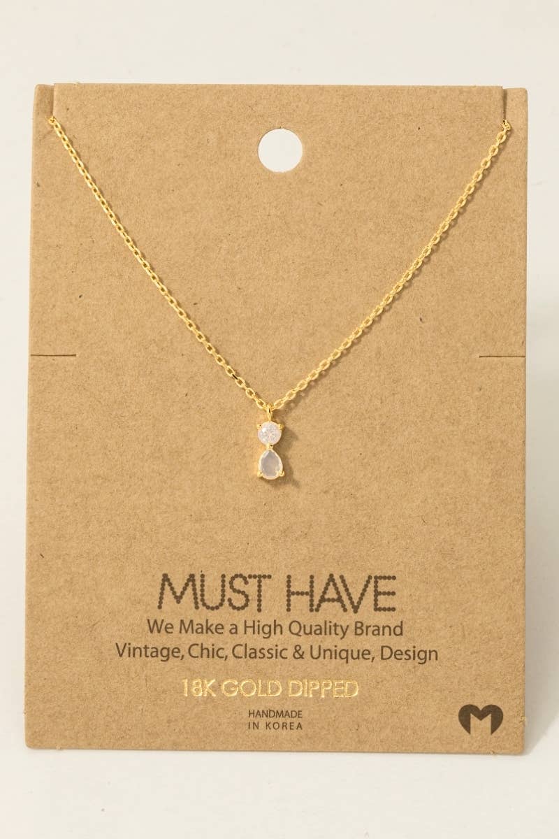 Gold Dipped Cz Circle And Teardrop Pendant Necklace