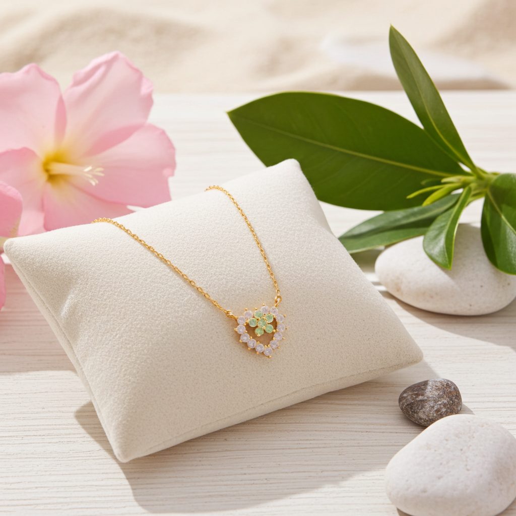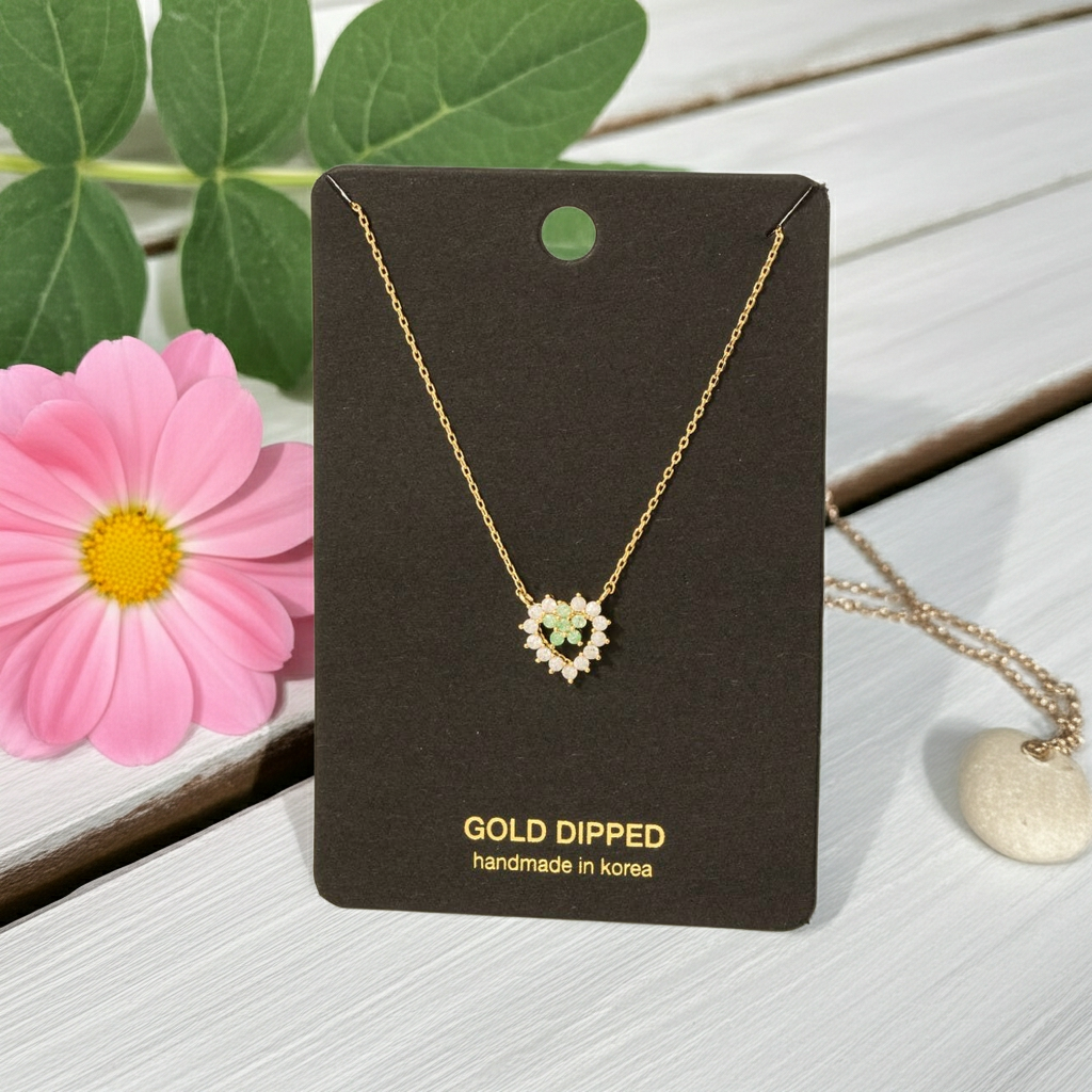 Gold Dipped Cz Flower Heart Pendant Necklace