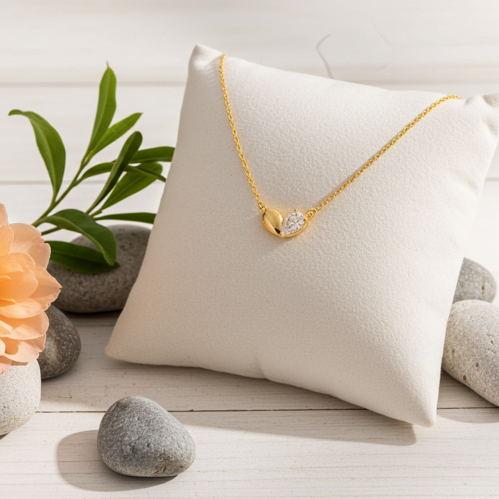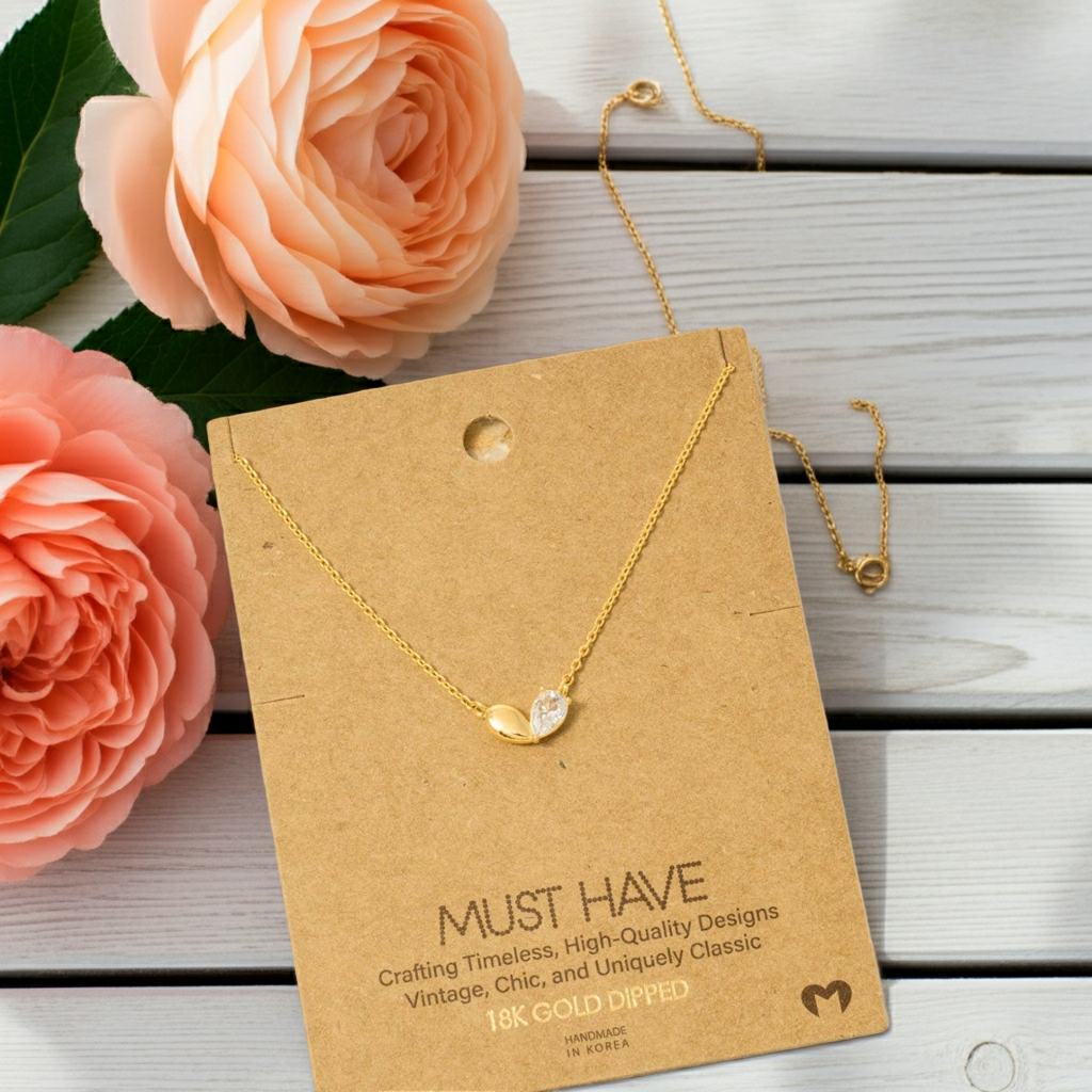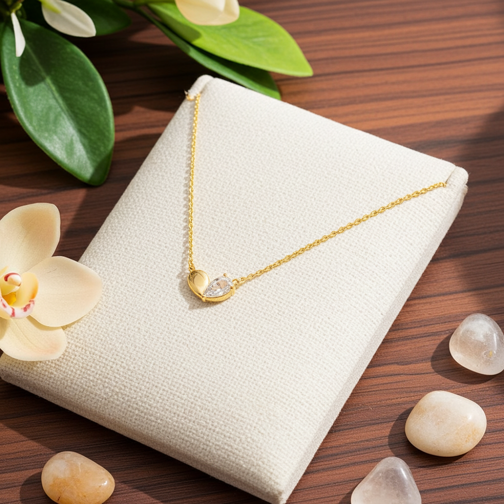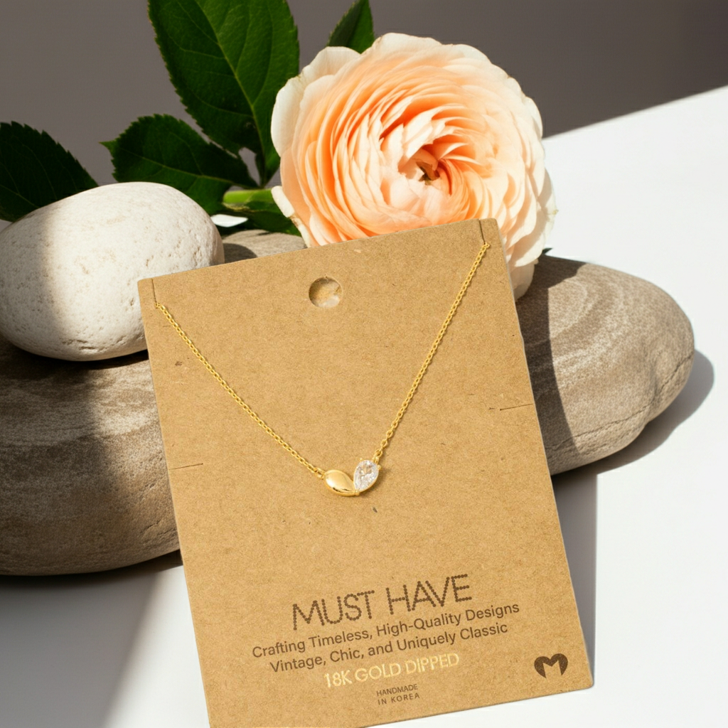 This trending necklace introduces a stunning gold dipped cubic zirconia heart shape pendant necklace style. Unveil modern elegance with this subtly intricate trending necklace.
