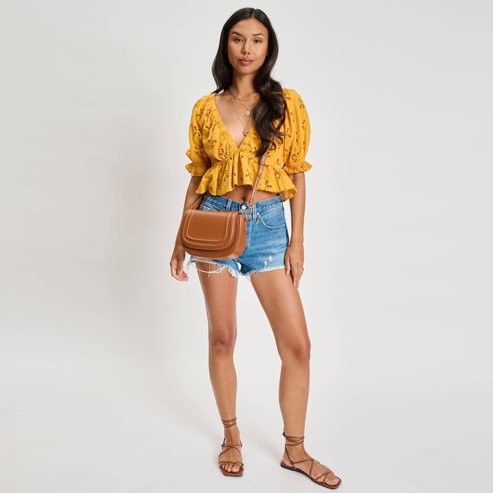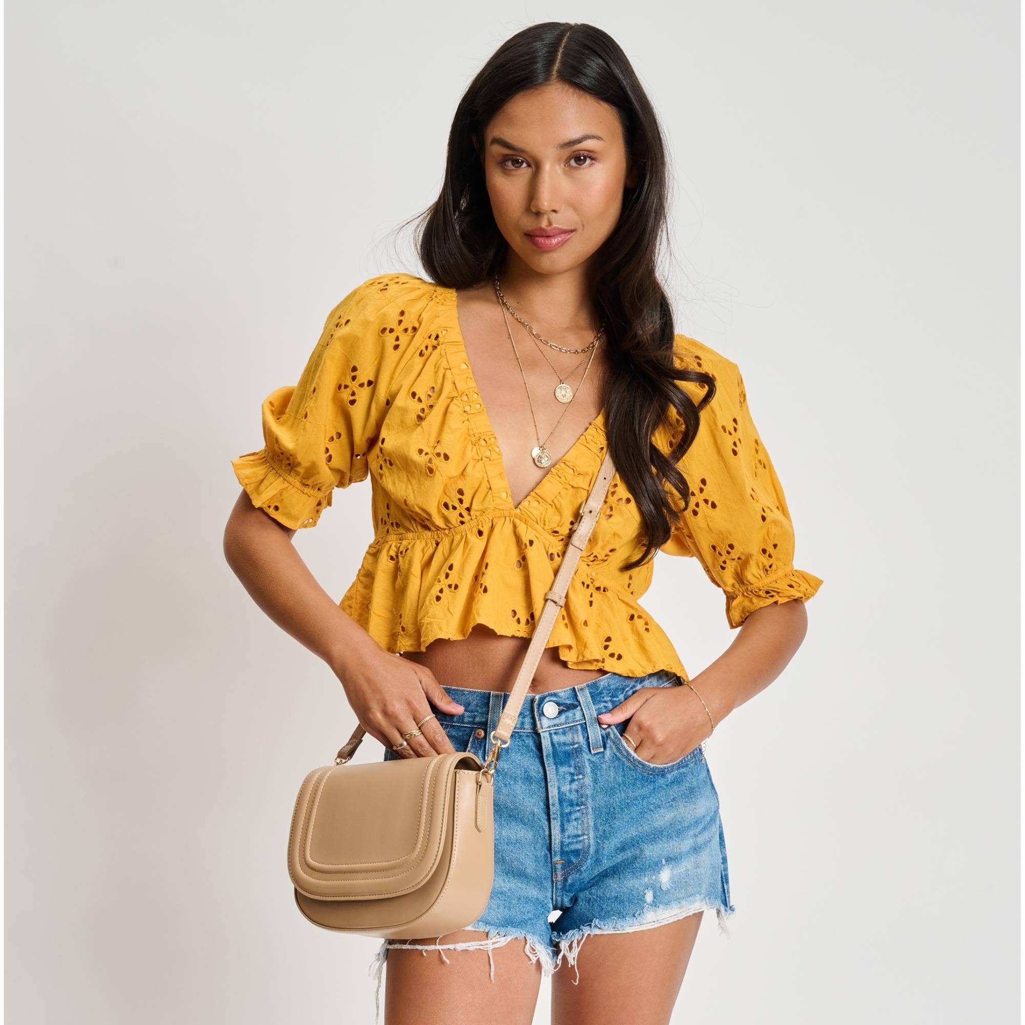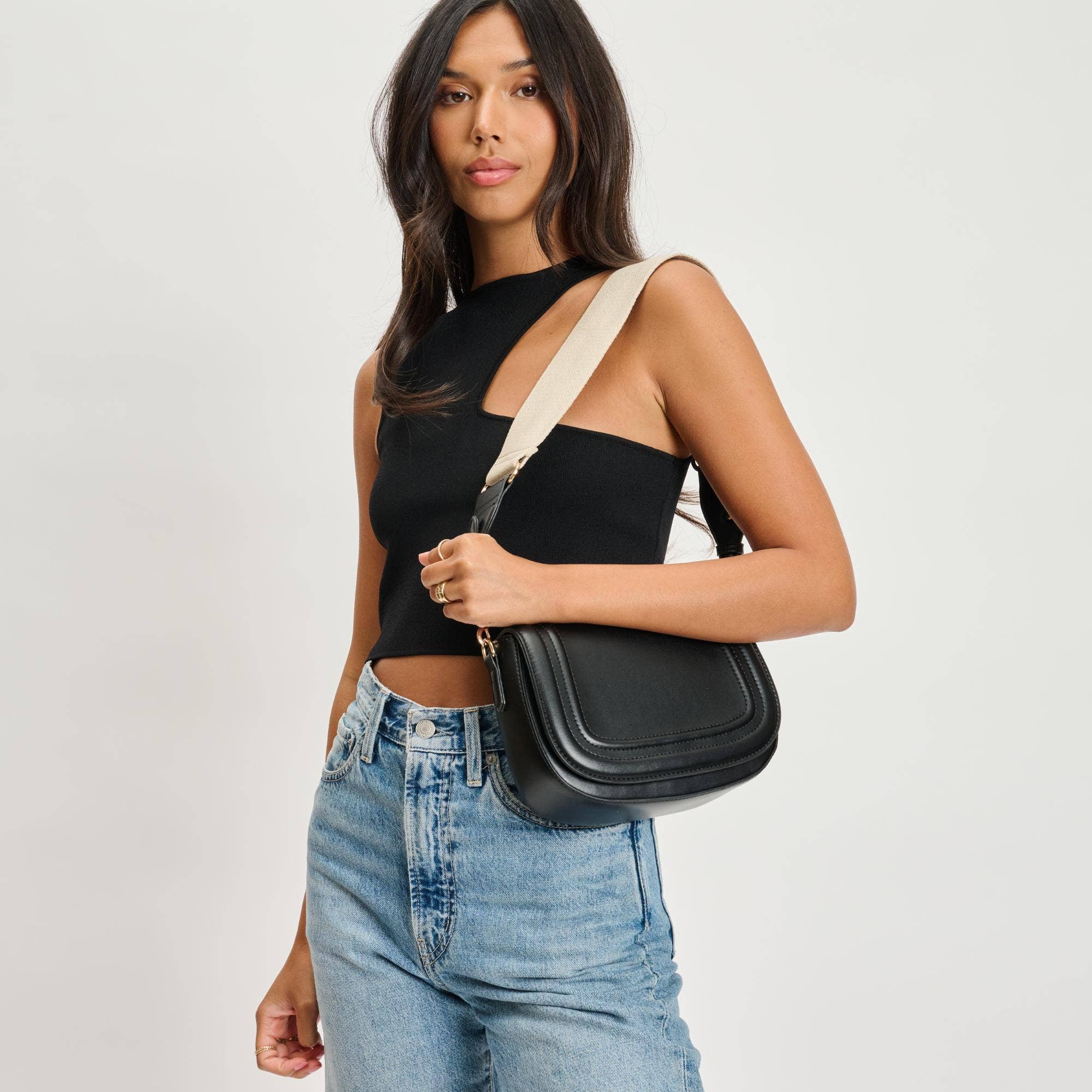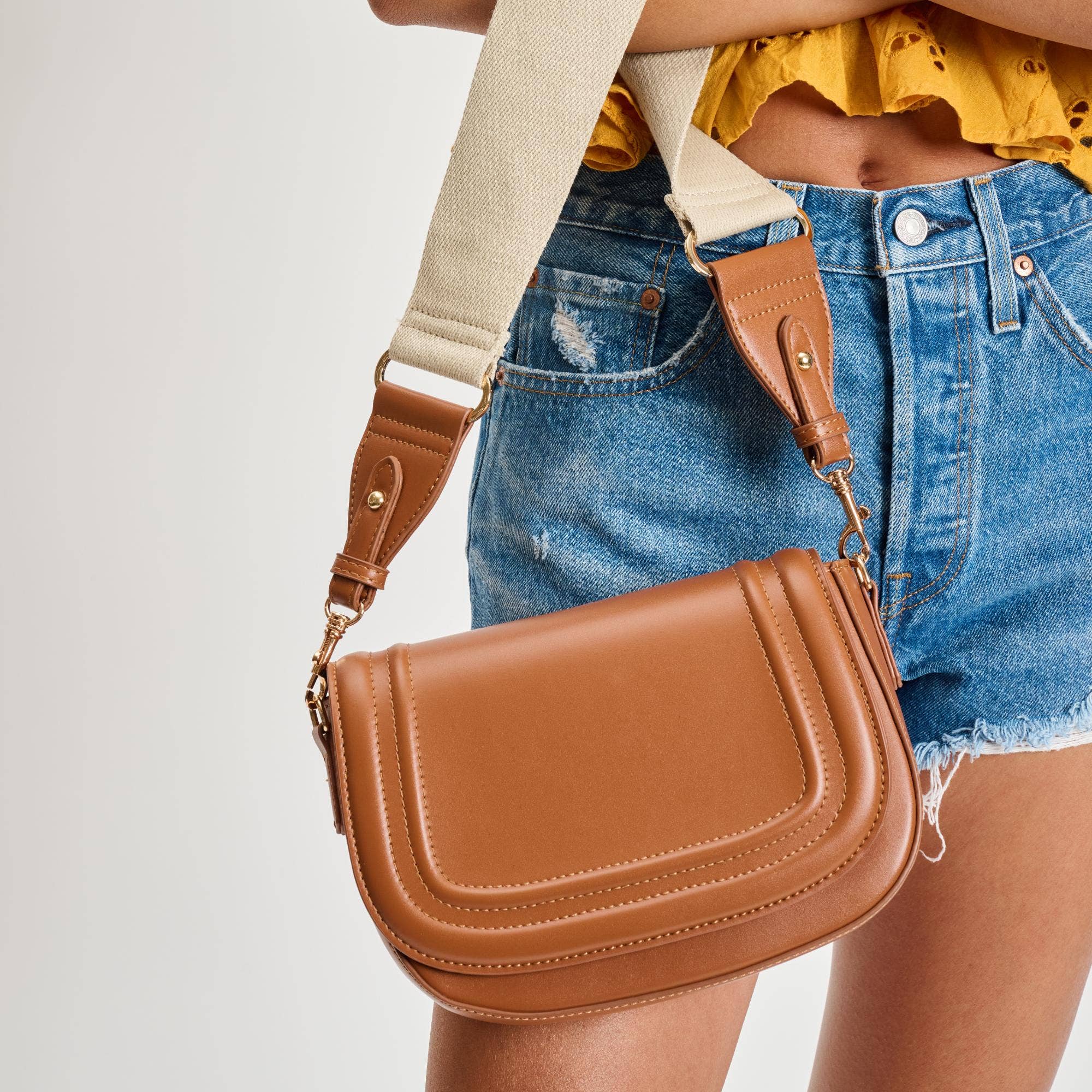 *Item Type: Crossbody *Material: Vegan Leather *Closure: Snap Button *Exterior Details: Smooth Vegan Leather, Stitch Detail, Additional Strap