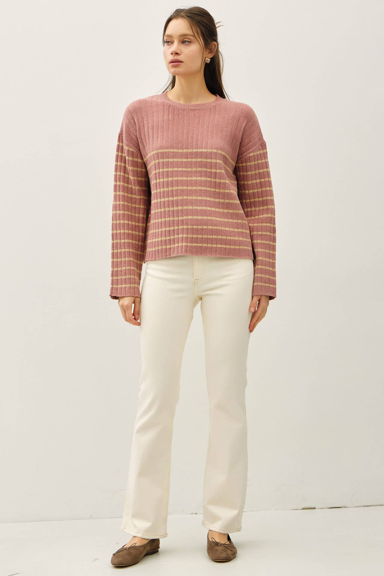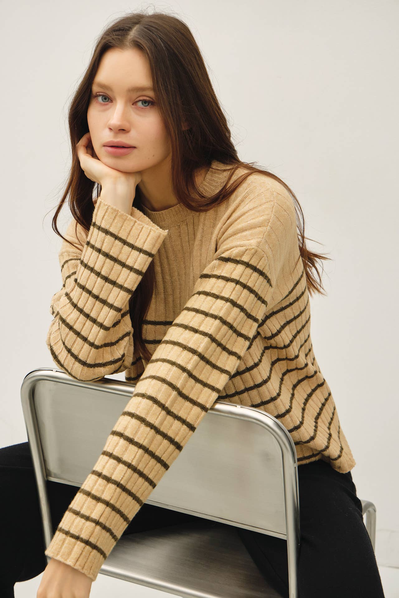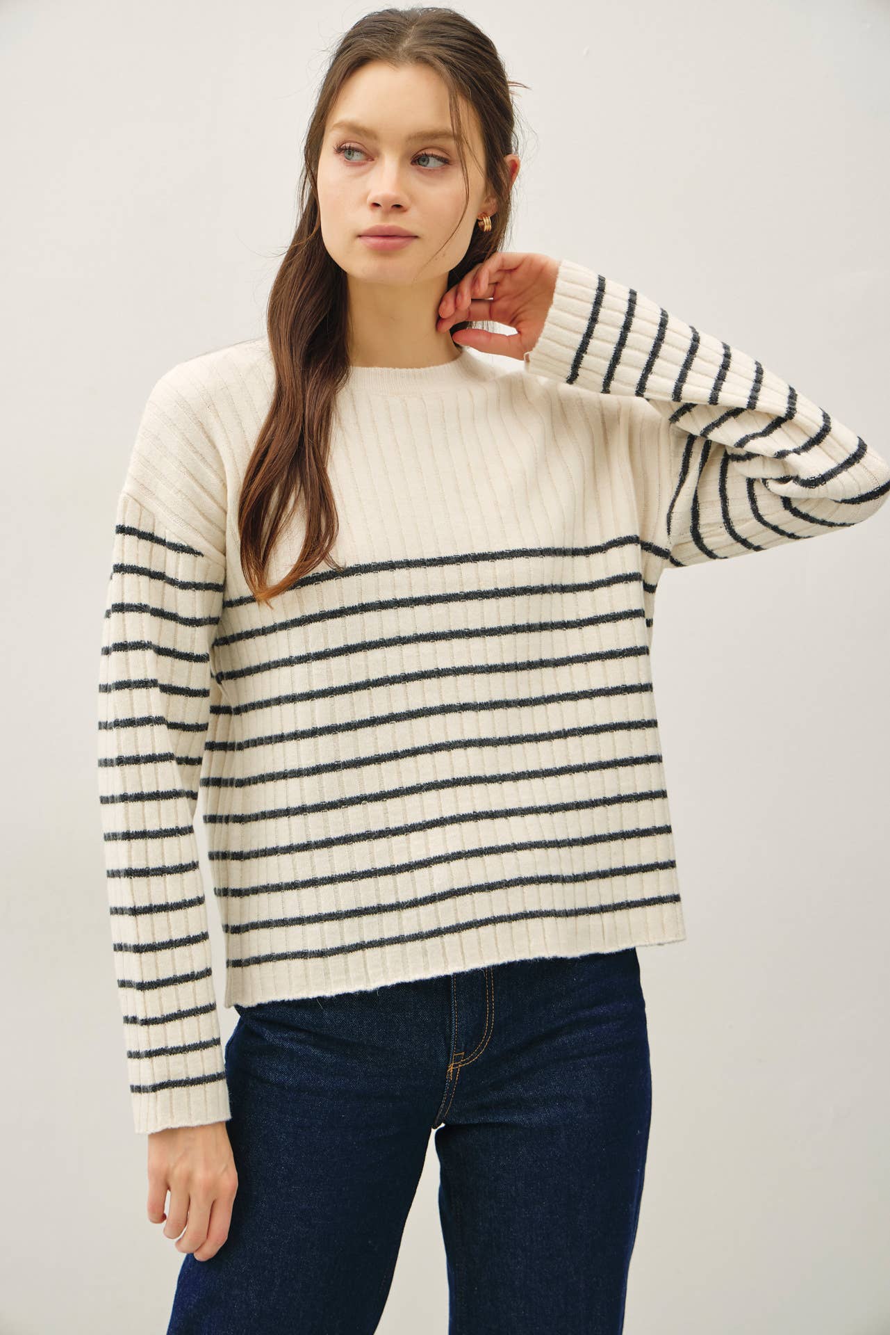 CHUNKY RIBBED STRIPE SWEATER TOP