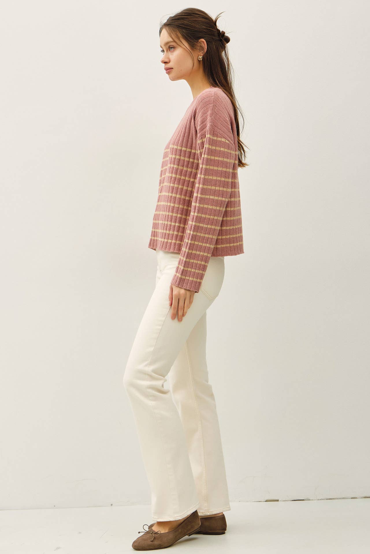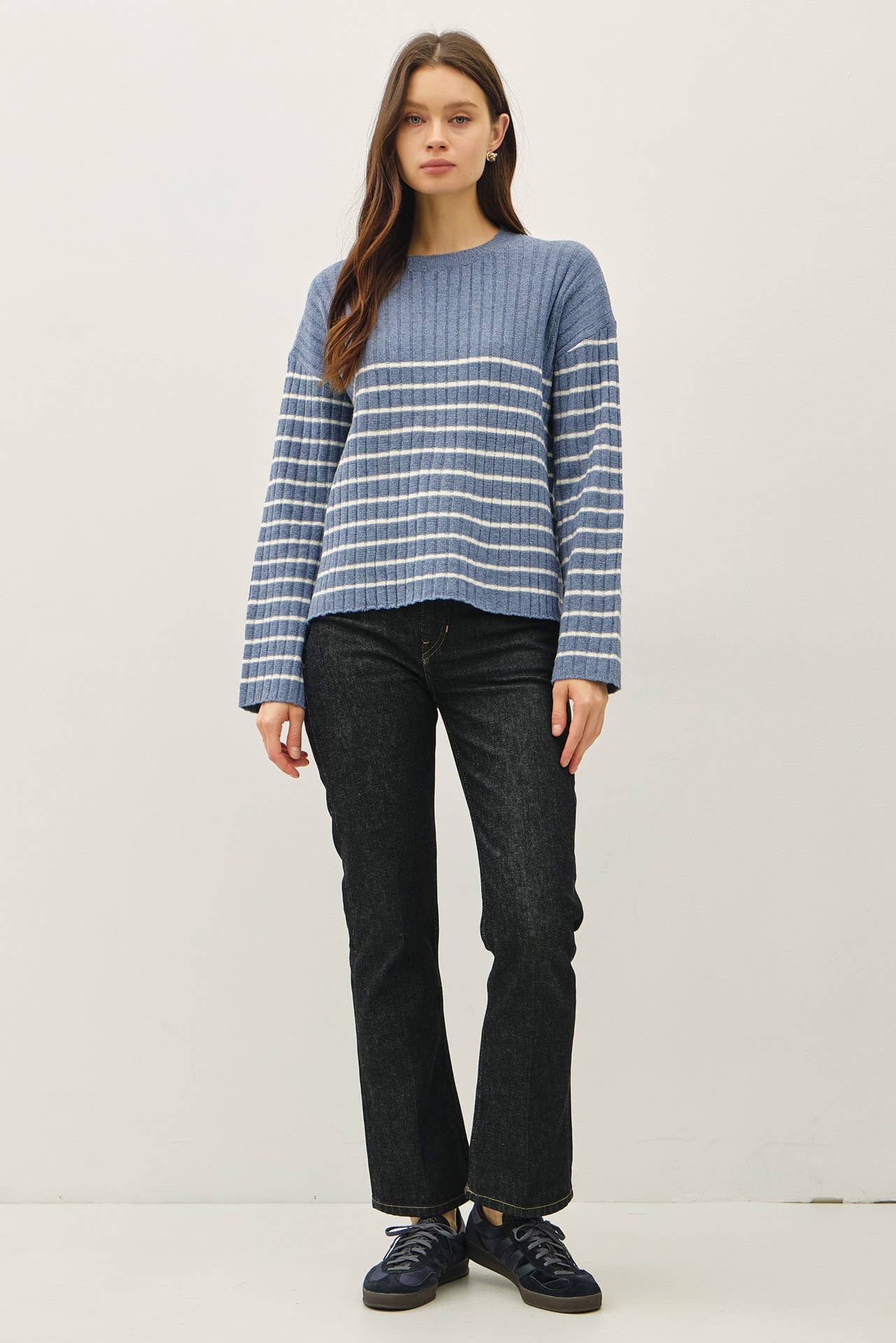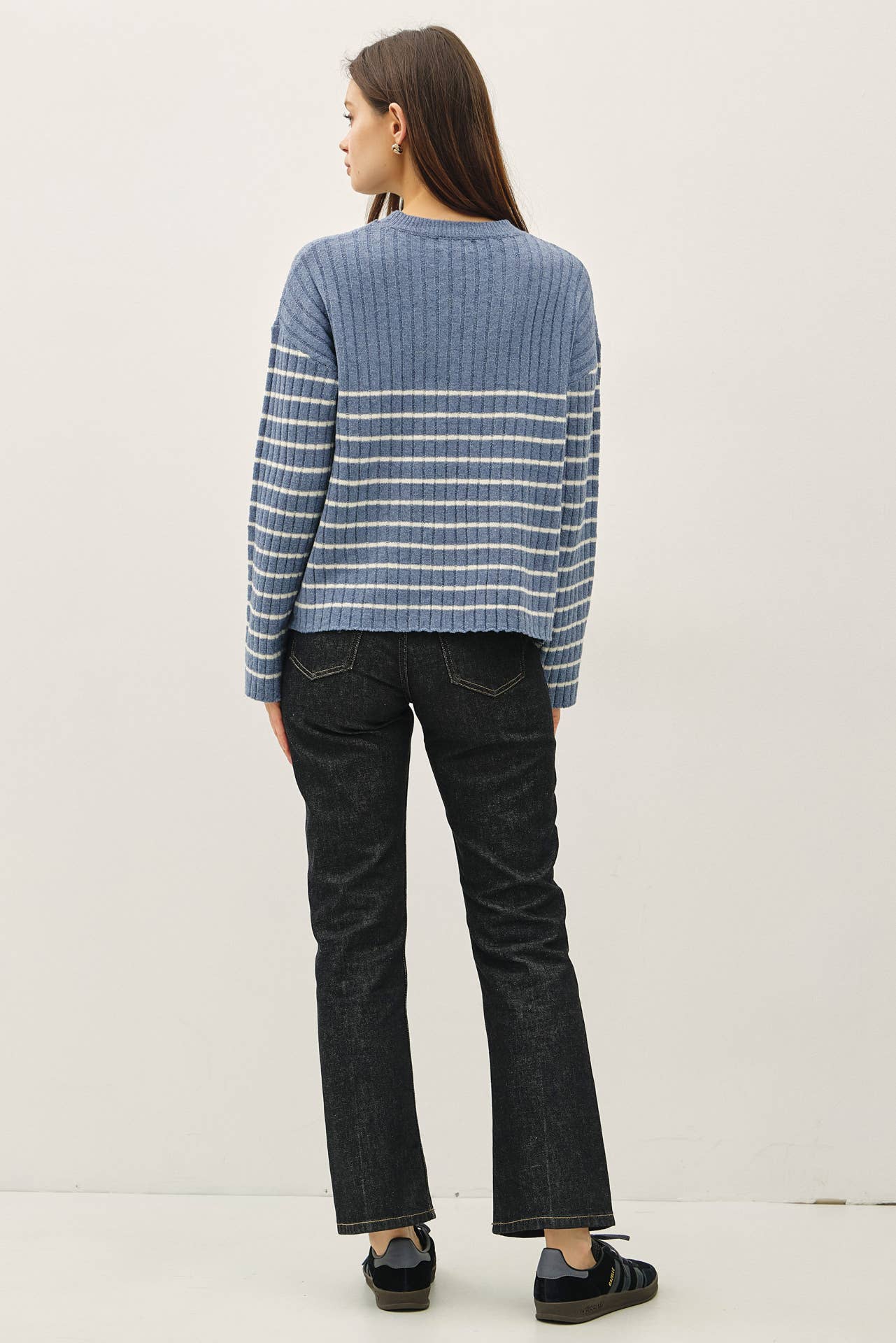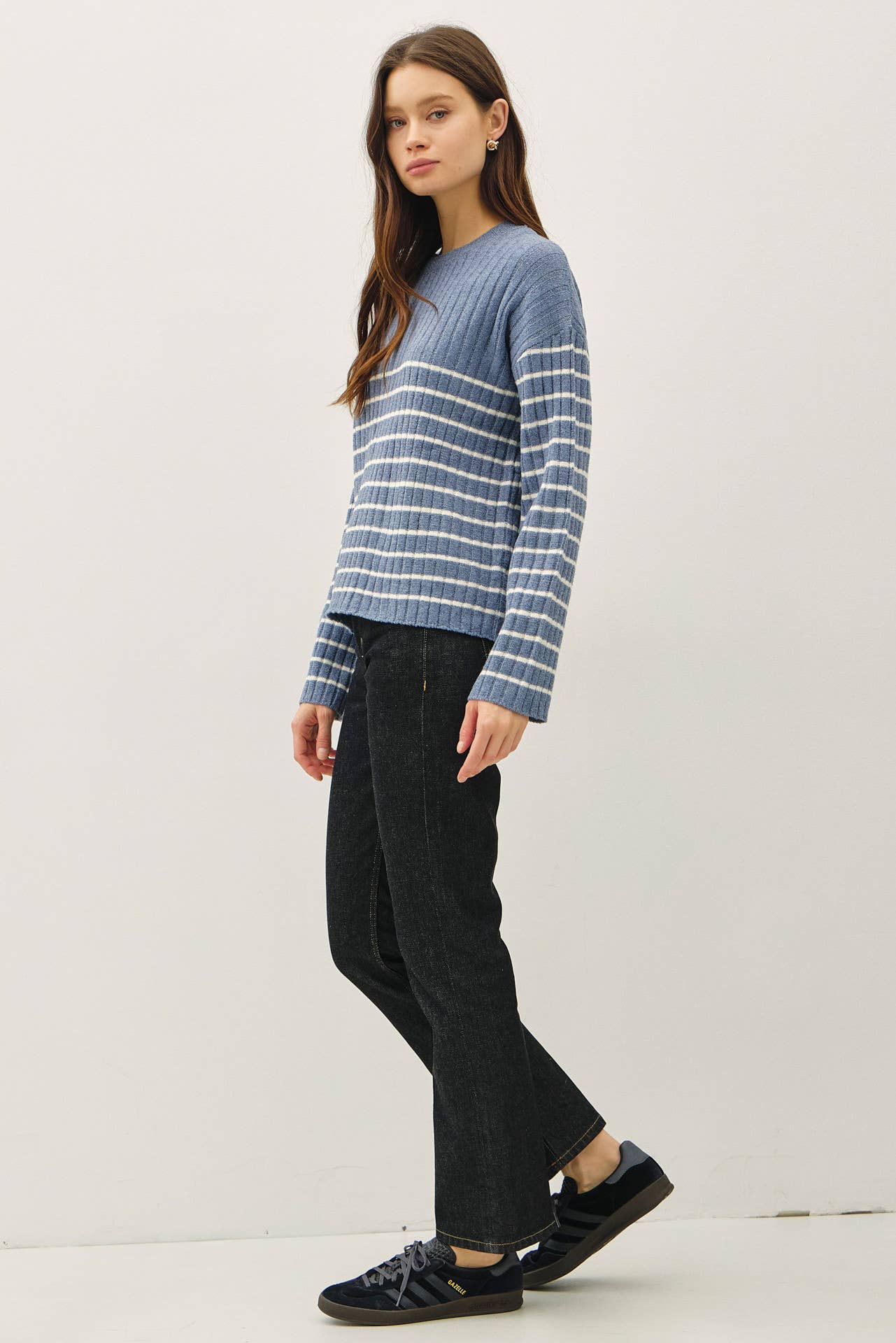CHUNKY RIBBED STRIPE SWEATER TOP