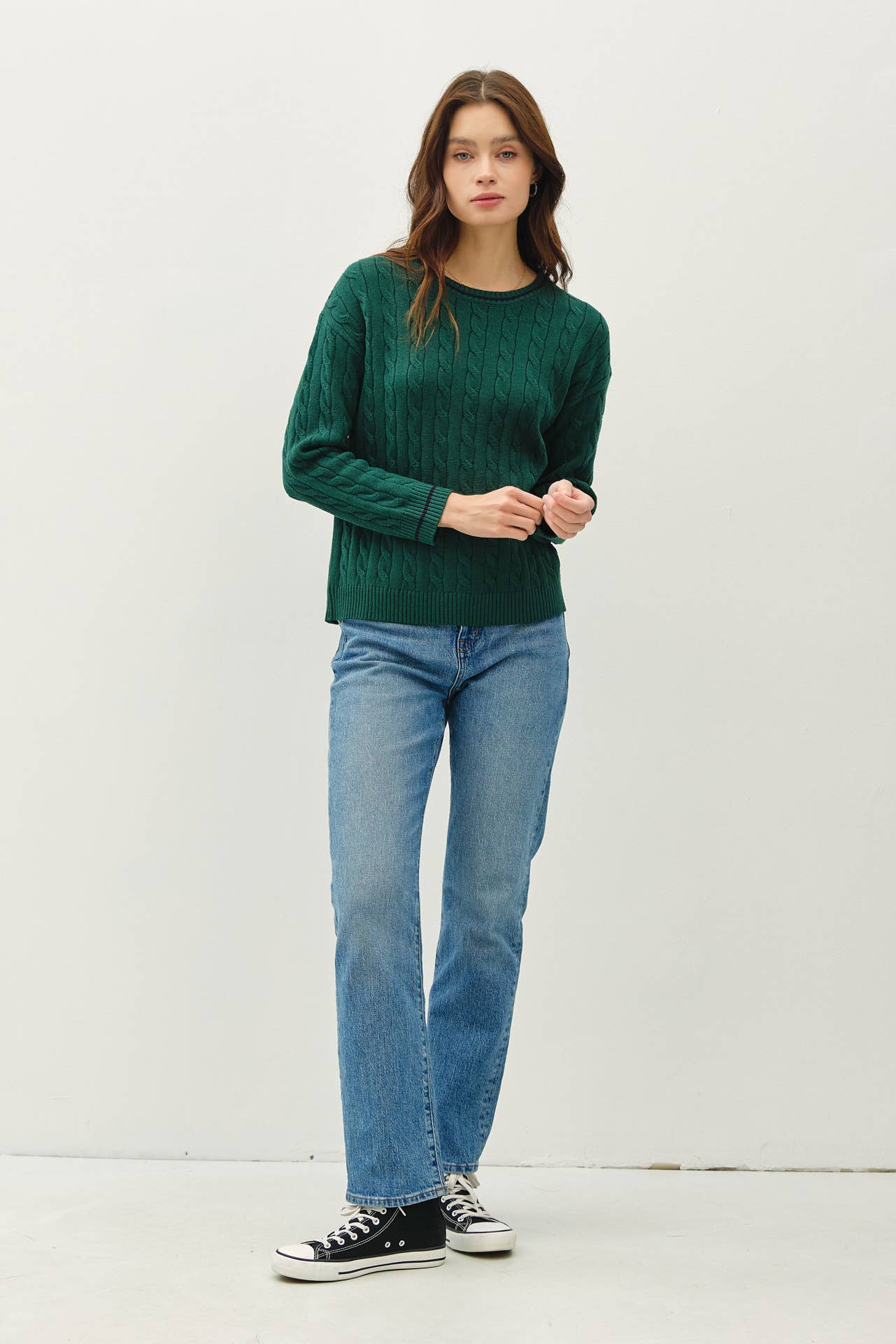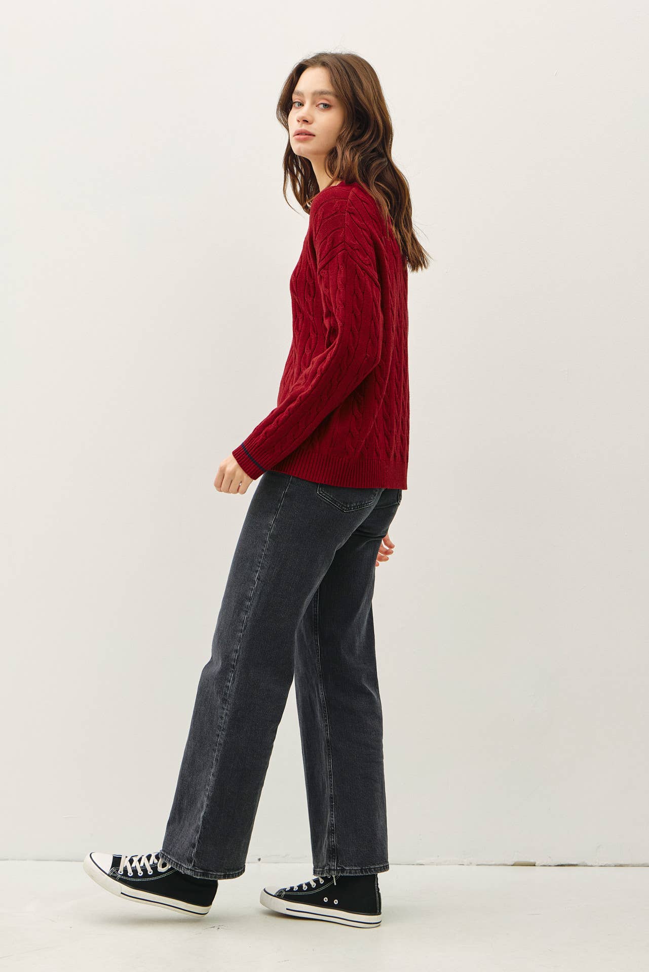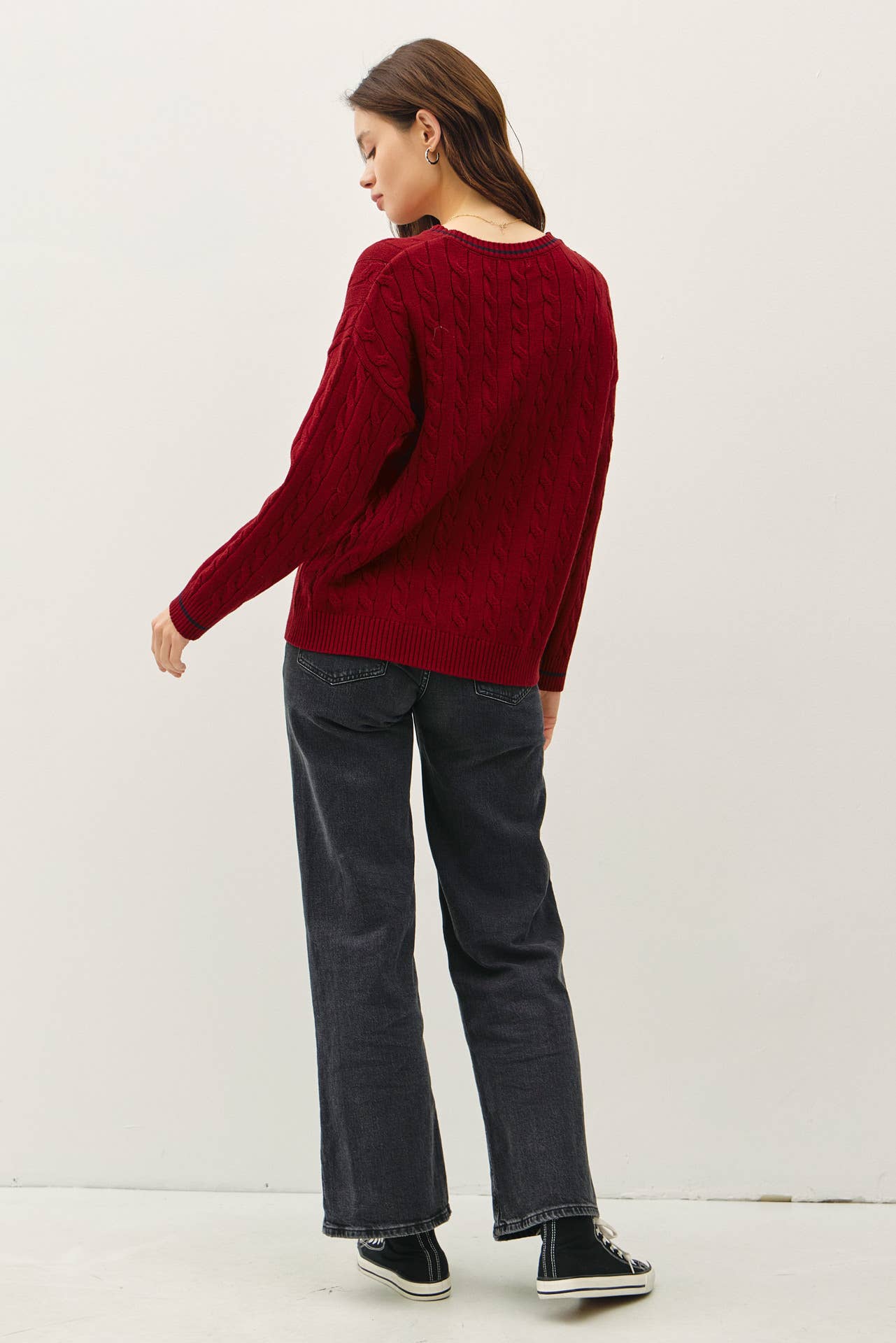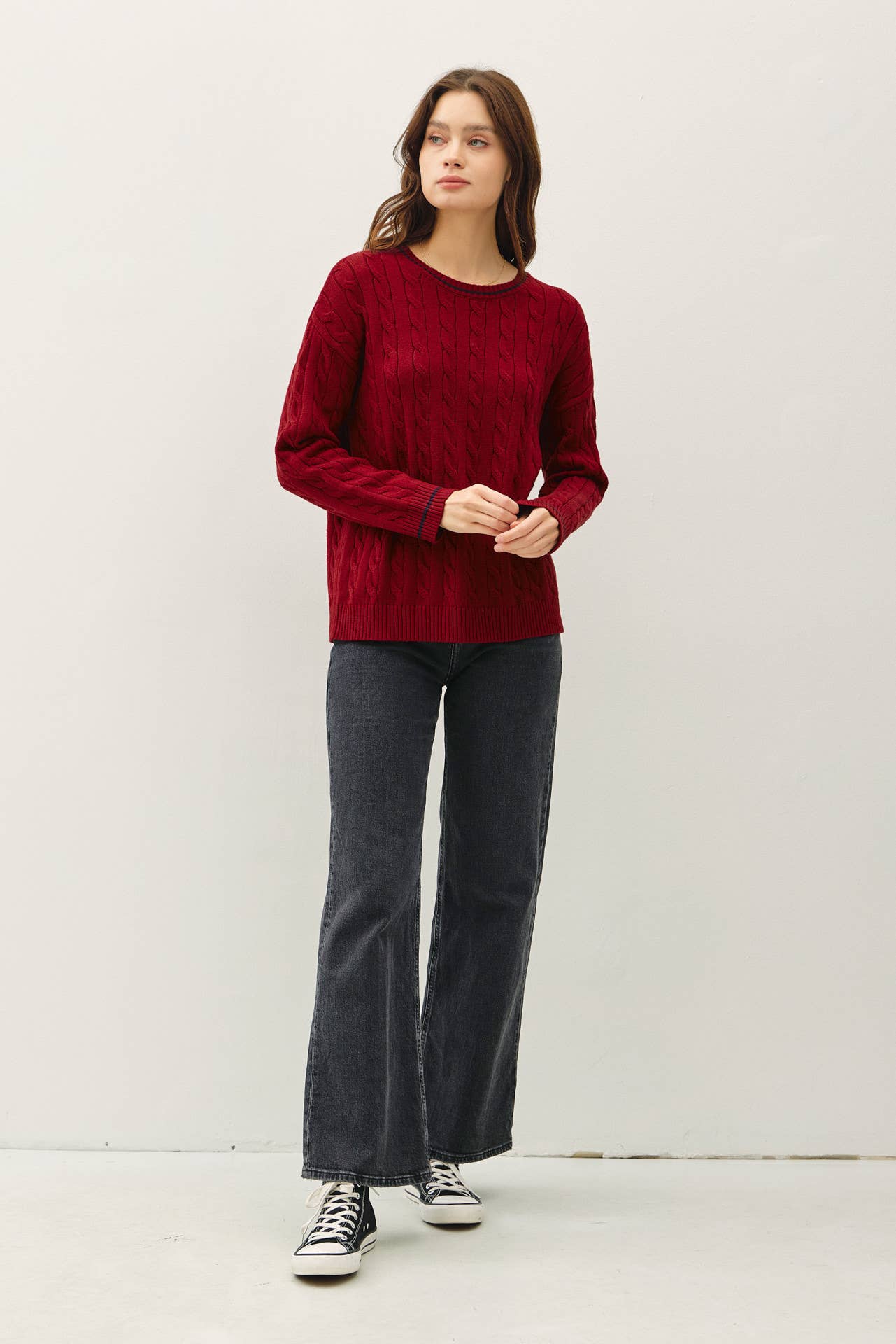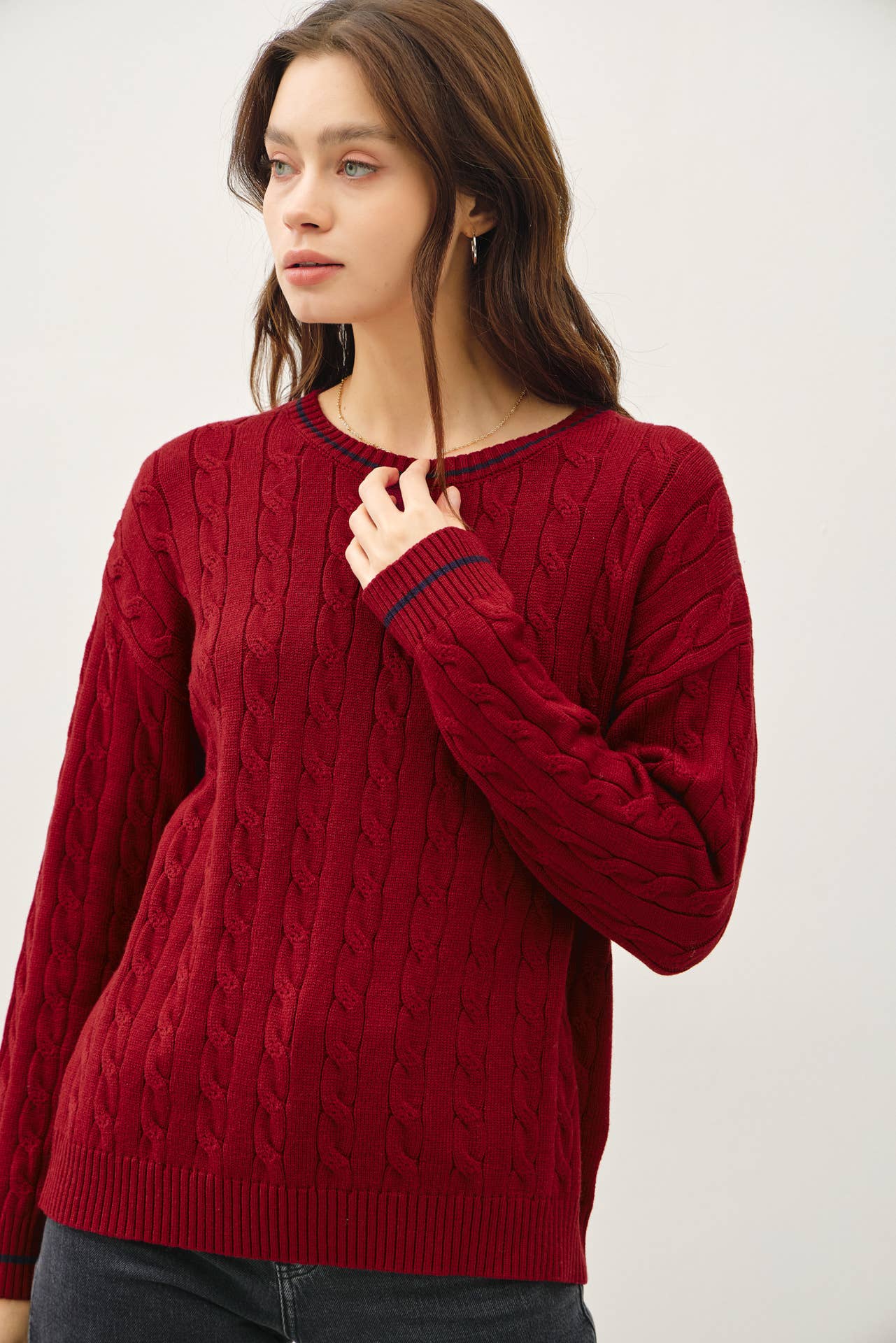 CHUNKY CABLE KNIT SWEATER WITH ACCENT DETAIL