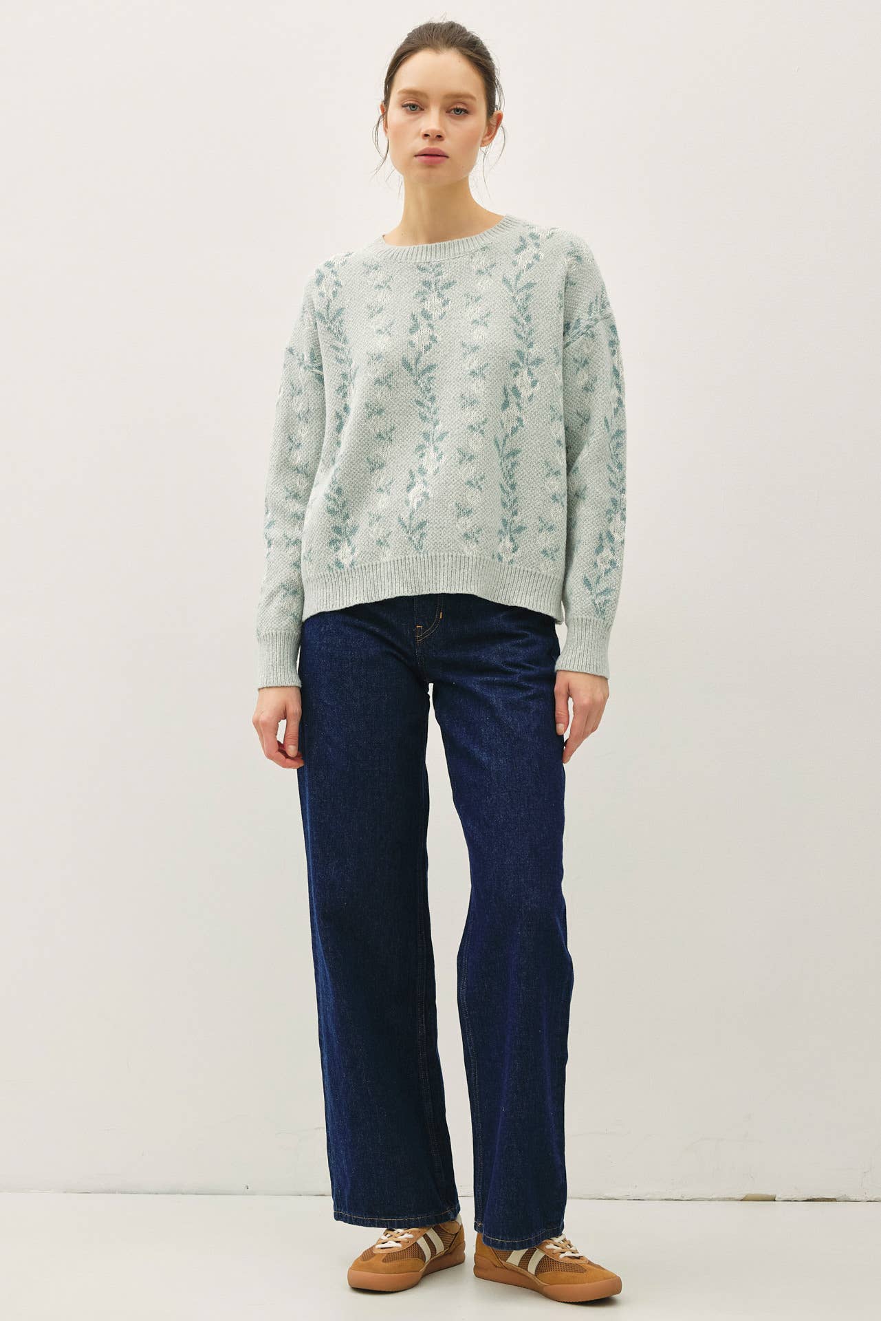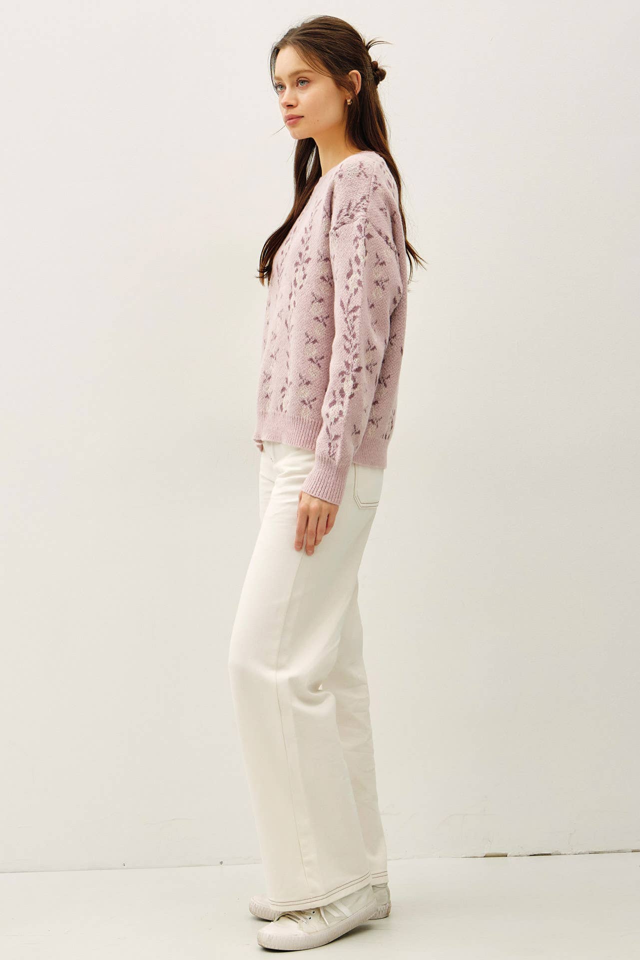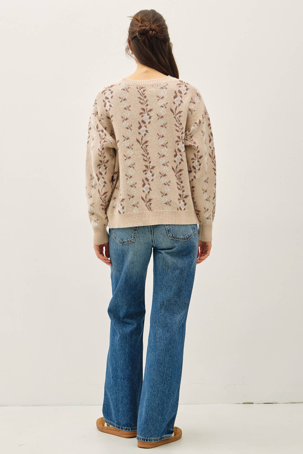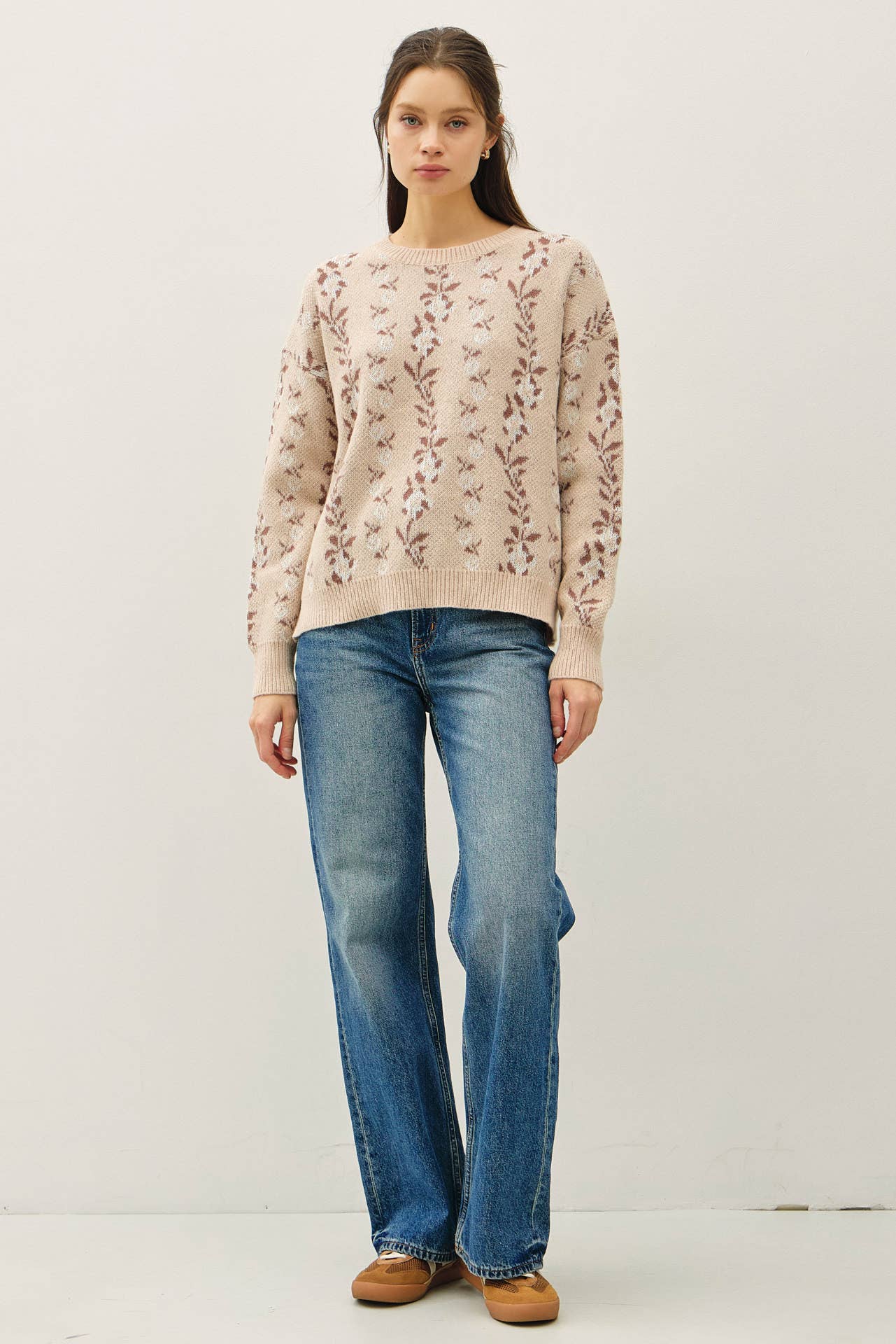COZY FLORAL JACQUARD SWEATER TOP
