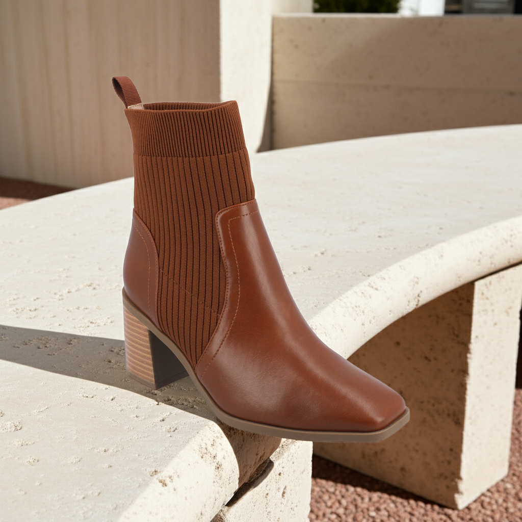 Introducing Harlowe by Journee Collection, the ankle-height Chelsea bootie that is as easy as it is versatile. The pull-on design and stretch knit fabric details make Harlowe an effortless choice for any outfit, while the vegan leather construction creates a classic look that can be mixed and matched with anything. It also features a 4 mm Tru Comfort Foam™ insole, a 2 3/4-inch stacked block heel, and a square toe design, providing all-day comfort that complements its timeless style.