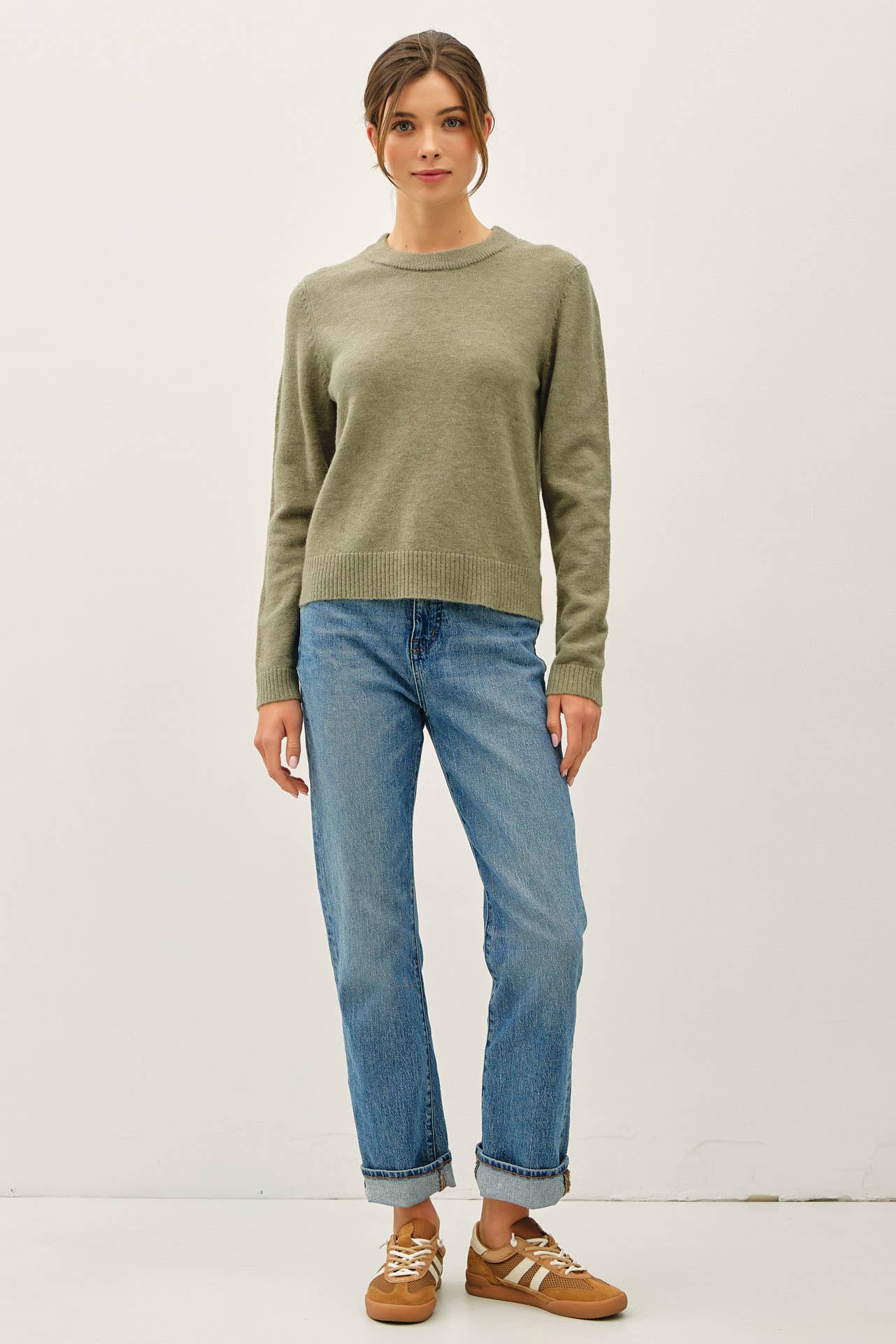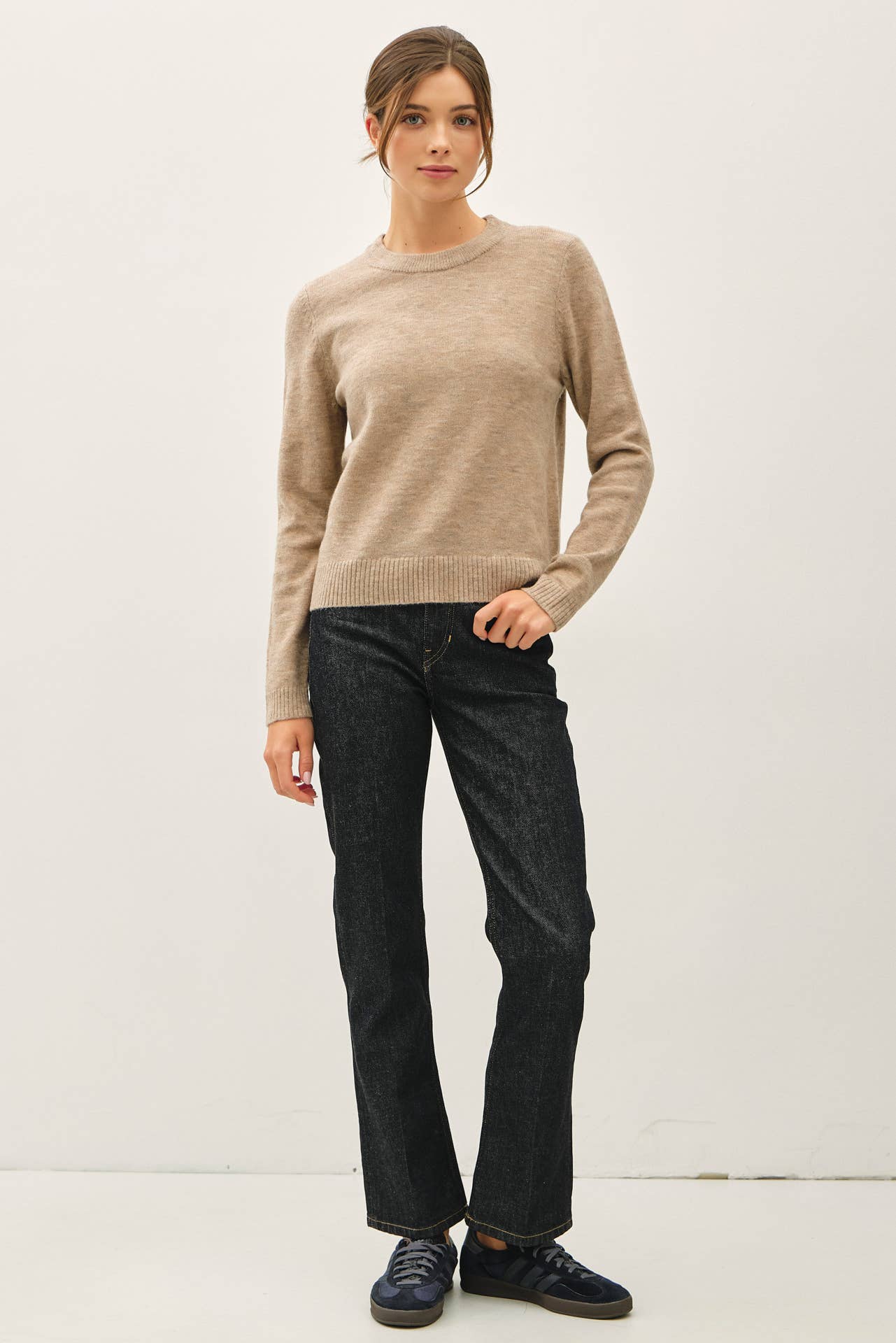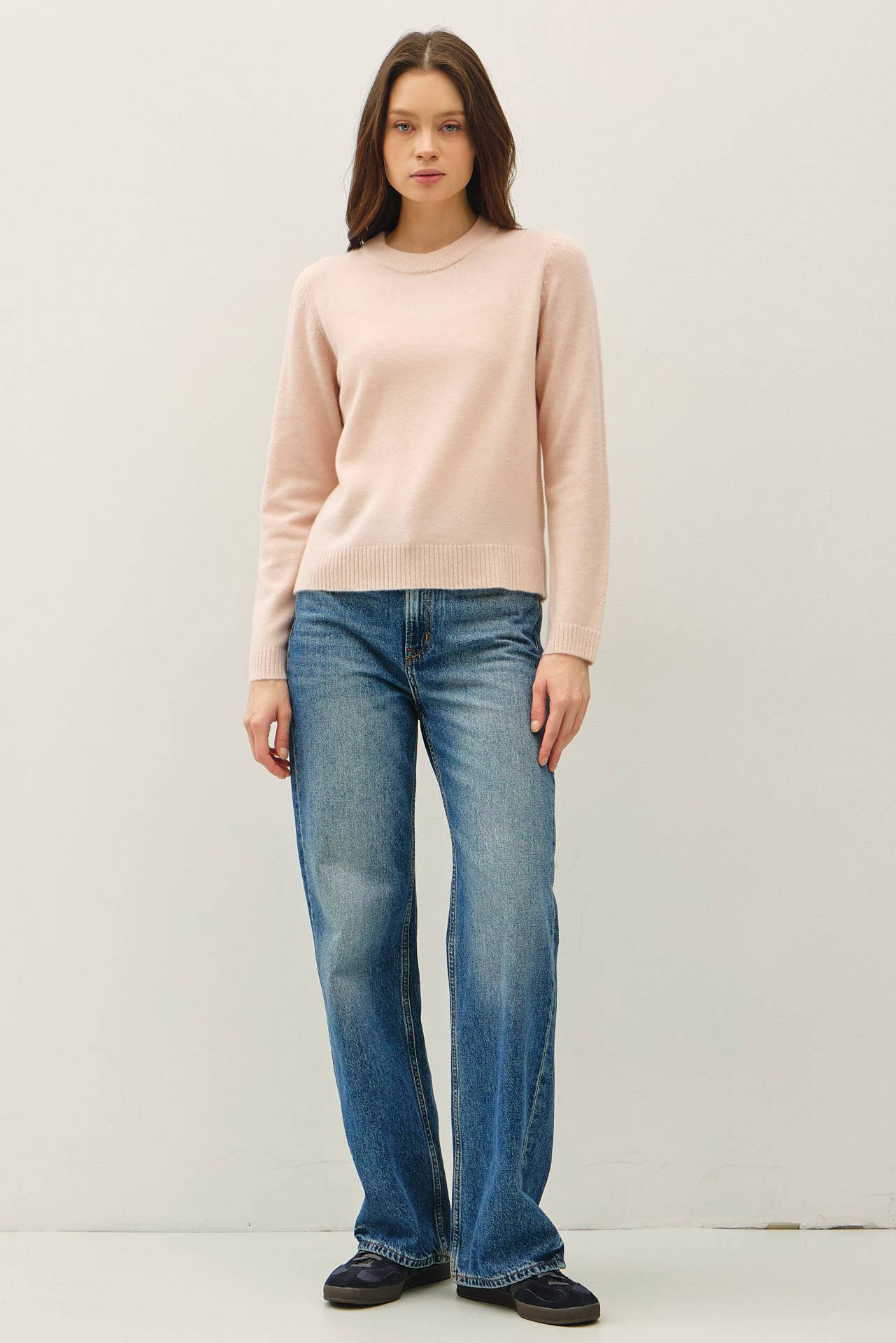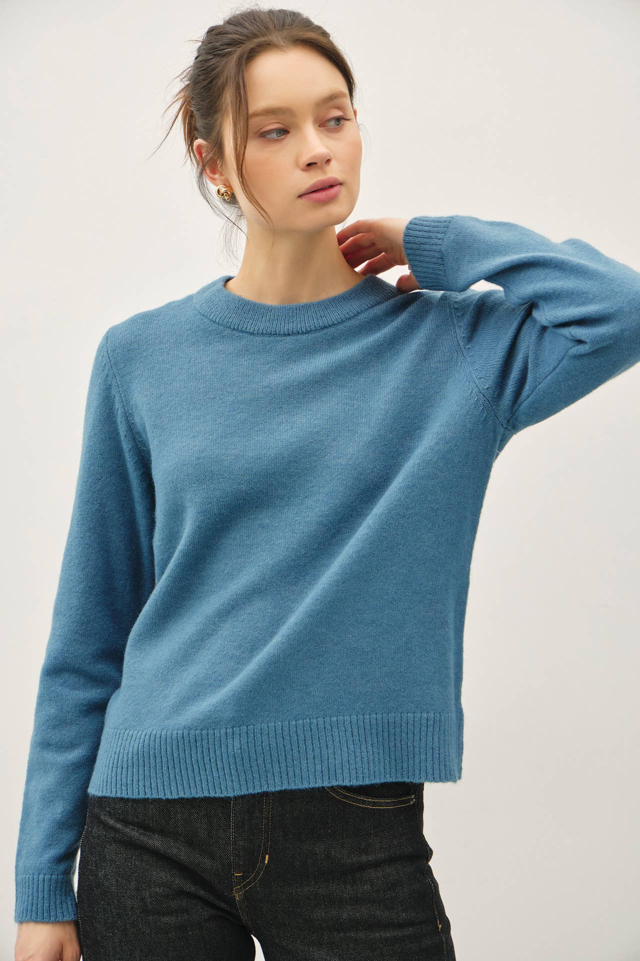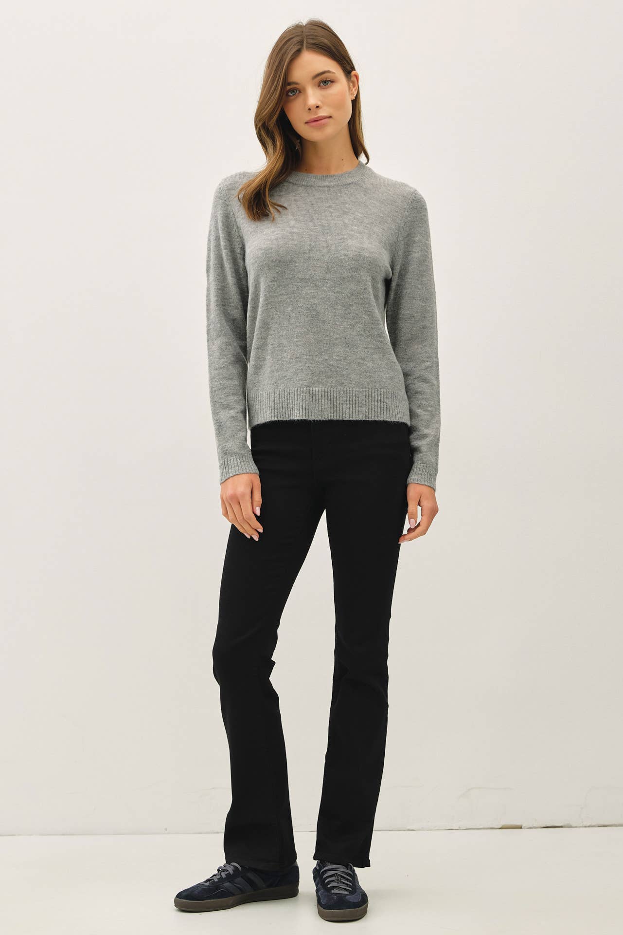 WOOL BLENDED BASIC CREWNECK SWEATER